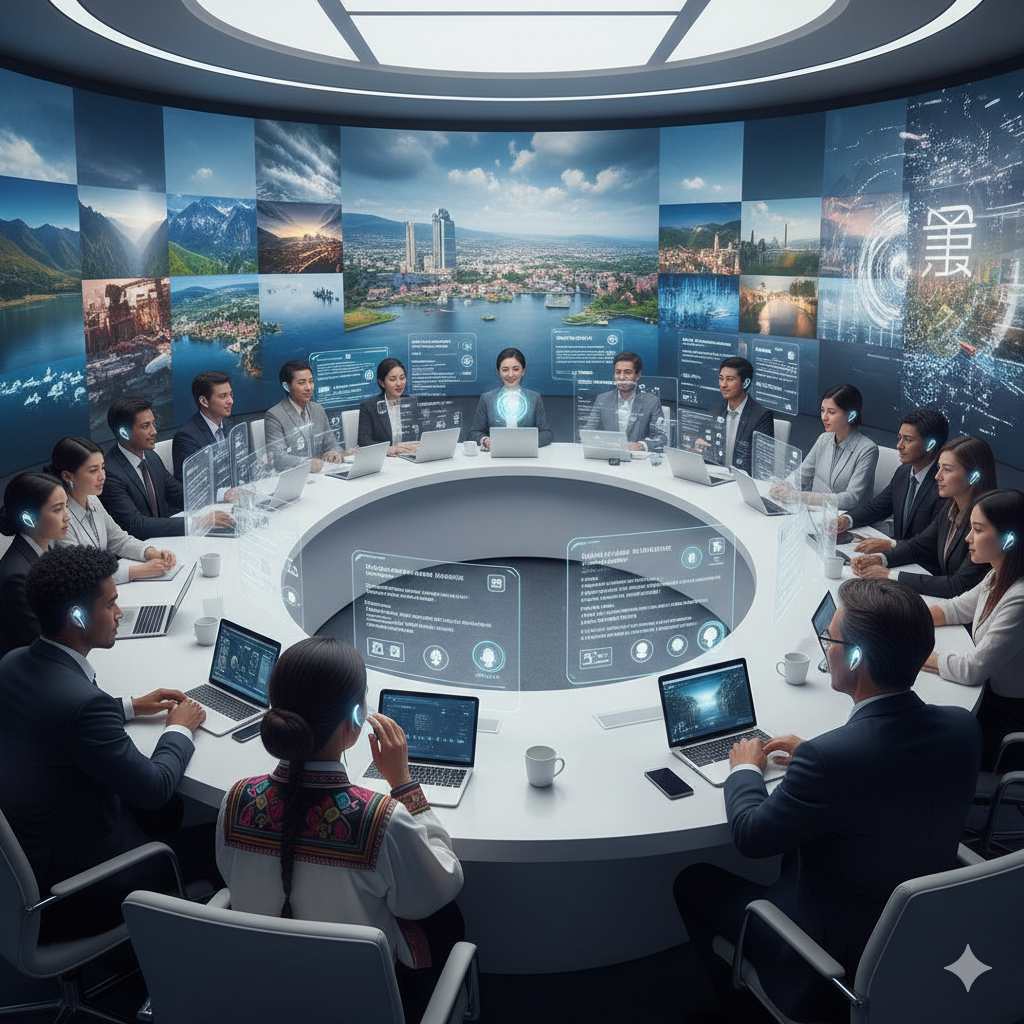 국제 회의에서는 AI가 100개국 언어를 동시에 중계하며, 참가자 모두가 자신 언어로 들을 수 있다.