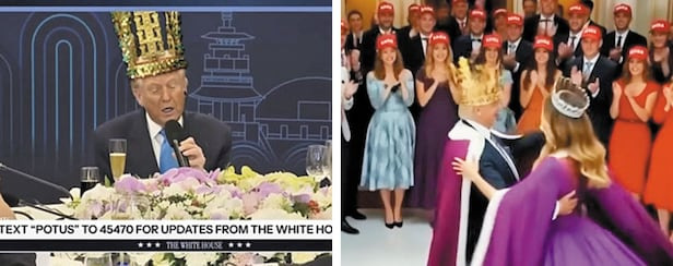 대통령실은 황금색을 좋아하는 트럼프 대통령의 취향을 고려해 10월 초 제작을 의뢰했다고 한다. 트럼프 대통령은 취임 후 각국 정상들로부터 황금 투구, 황금 왕관 등을 선물받았다. 금관 모형 선물은 미국에서 큰 화제가 되고 있다. 트럼프 대통령 비판자들이 그를 ‘왕’에 비유하며 ‘노 킹스(No Kings·왕은 없다)’ 시위를 벌이고 있는 가운데 금관 선물을 받은 사실이 알려지자 소셜미디어에는 트럼프 대통령이 신라 금관을 쓰고 춤추는 모습을 담은 합성 영상도 올라왔다.
